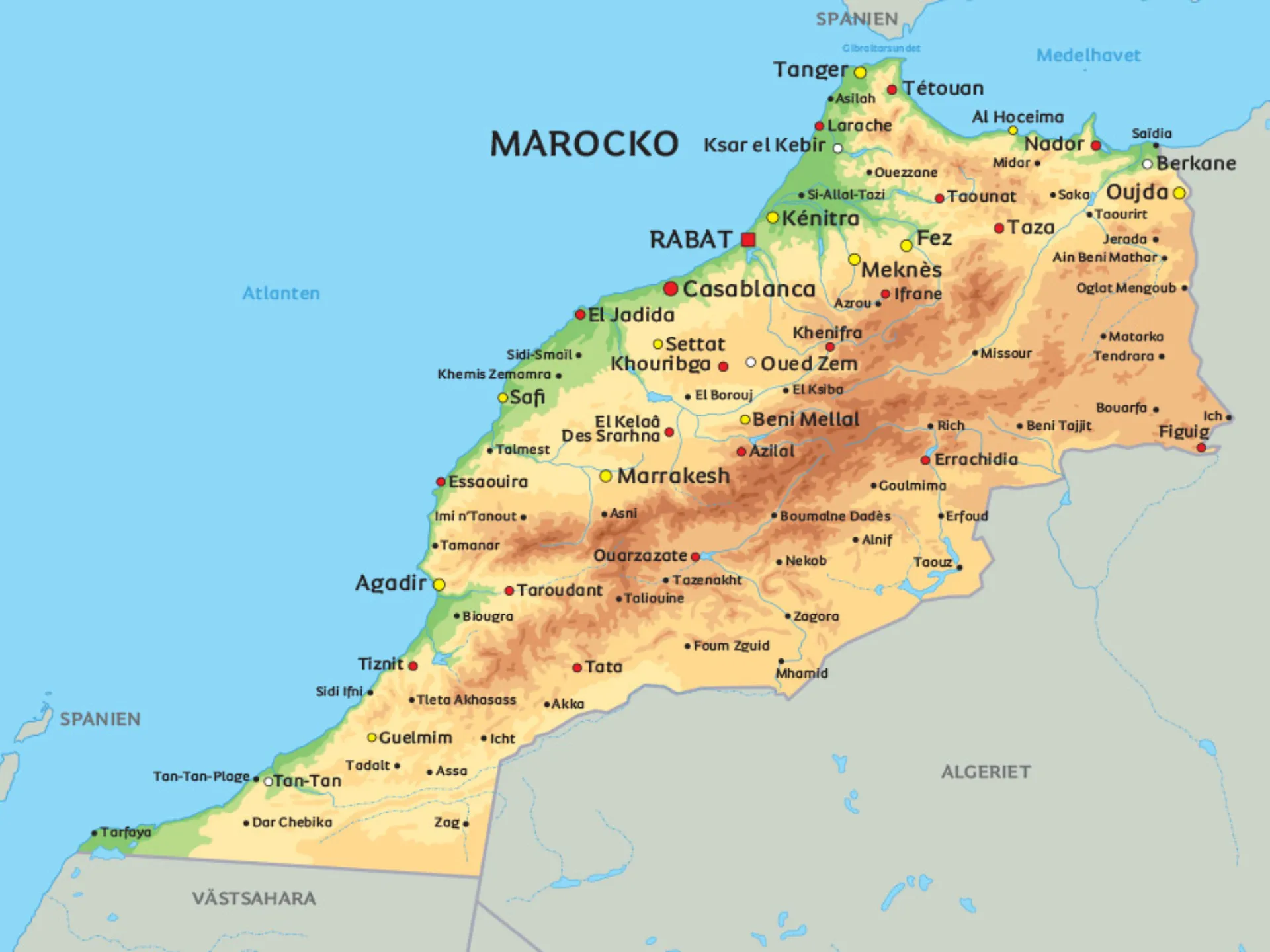 Utforska Marickos geografi på kartan nedanför. Se bland annat placeringen Casablanca, Rabat eller Marrakech.