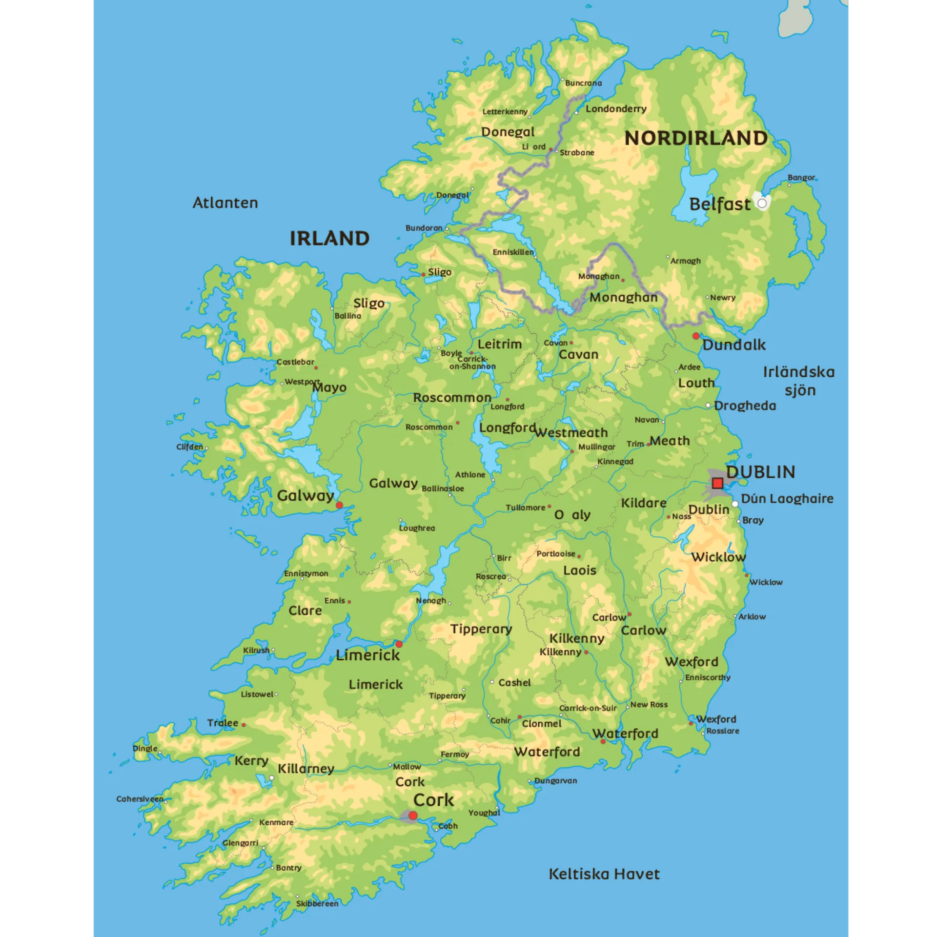 Utforska Irlands geografi på kartan nedanför. Se bland annat placeringen av Dublin.